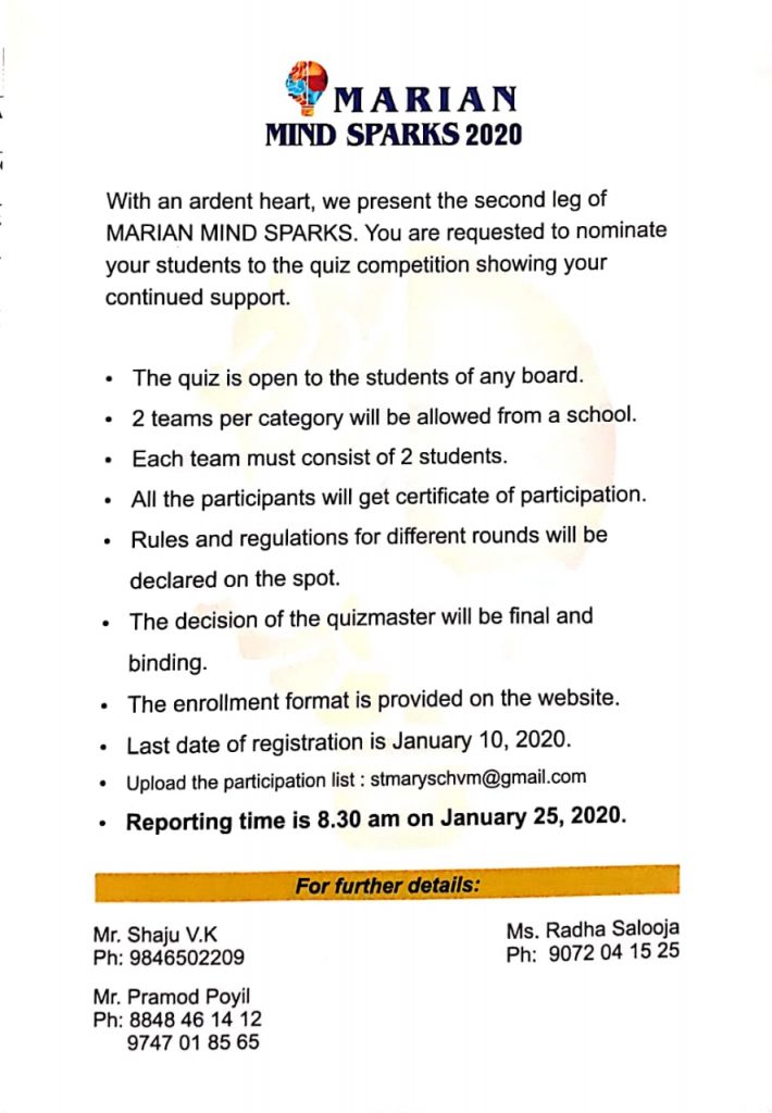 This closing ceremony intends to give a picture of the genesis of this temple of learning and also it explains the gradual growth of the school as a Big Family namely Marian Family. When I say Marian family it means a lot because its growth as a family is a step-by-step and continuing process. Thanks be to God who binds us together as one family with cords of love and understanding.