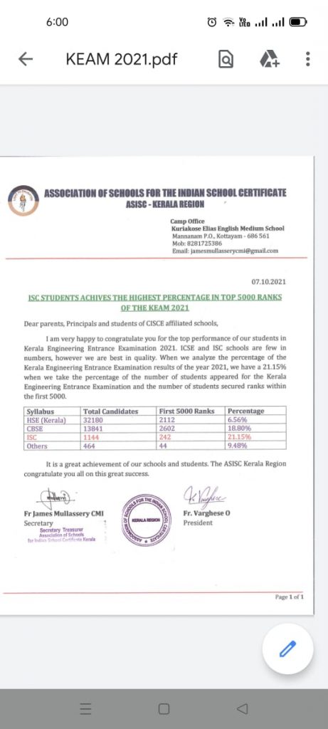 Yes, friends Today there is a sense of satisfaction and pride in acknowledging that ST. Marys’ School, Chevarambalam has taken rapid strides to establish itself as one of the leading ICSE/ISC schools in Kozhikode. Along with Deivadasan Thommiachan let me say with the members of my congregation that, this temple of learning has become the light of this locality. Its exciting journey has been marked by a period of visionary planning, sustained hard work, clear and focused vision and mission. As we journey towards the Golden Year, may our school keep GIVING LIGHT TO THIS LOCALITY with the motto “With Light to the World”.