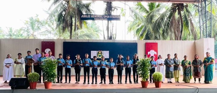 Neal Santhosh, Arshya Koushithraj, Srishti Vineet were honoured along with the mentor Mrs. Shanila K for receiving Trophy, which they received from K-DISC session at Kottarakara, during the morning assembly in recognition of YIP 3.0 performance in the State Leavel.